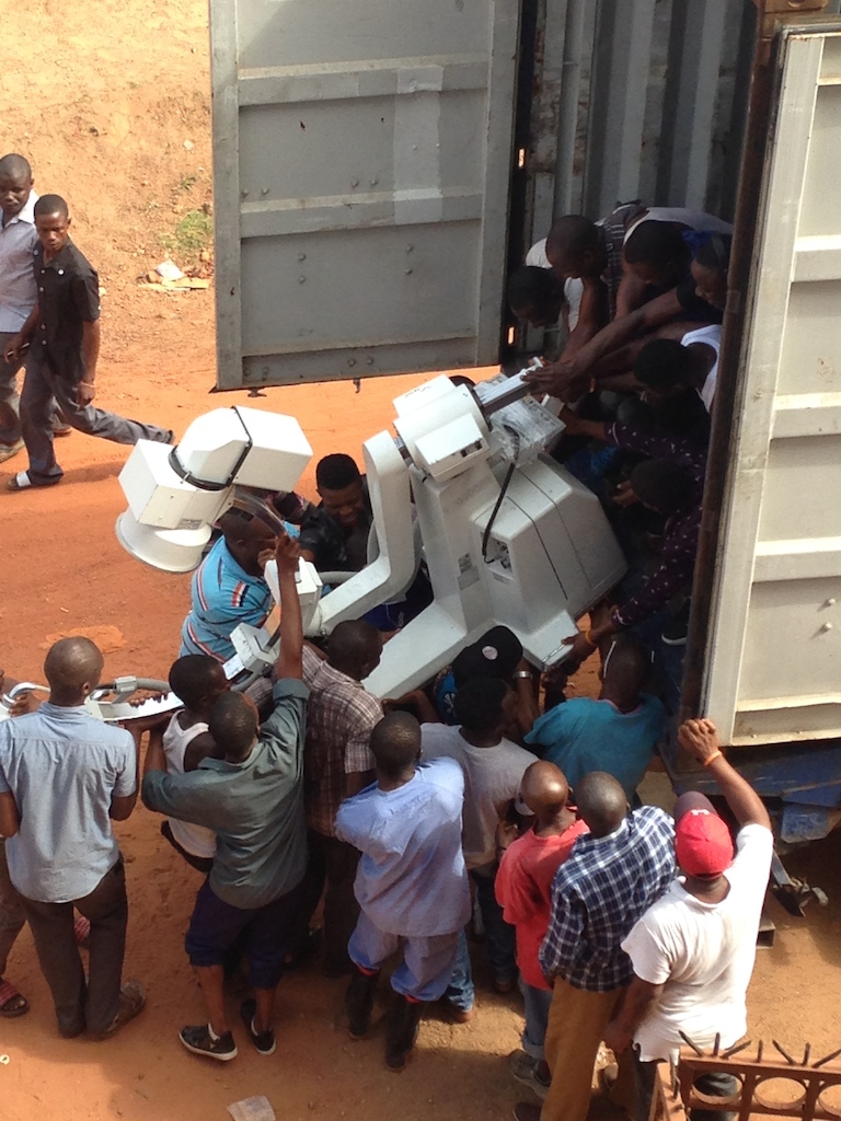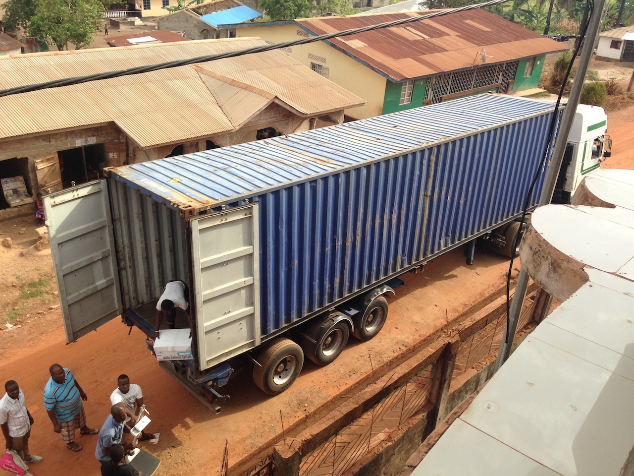 A container was send, and after a long travel (via China) arrived in Sierra Leone. After a complicated job of clearing the container, it arrived at the clinic on 27th of April (Sierra Leone’s independence day).