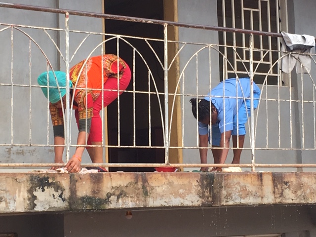 At 8 am a large group of people started the cleaning, and other soon joined. Most of the staff was present and also some patients or their caretakers assisted.