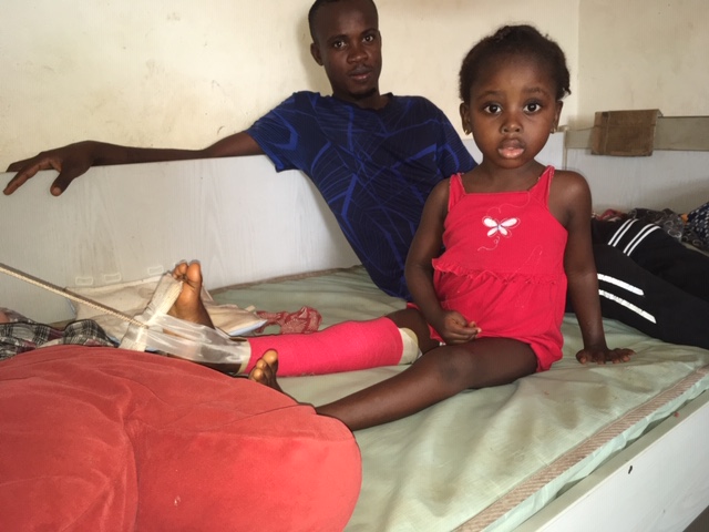 Zainab came on December 22th, she had had an accident with a motorbike. Her right upper leg was broken. She was brought by her father to City Garden Clinic. Clinically it was clear that her leg was broken.