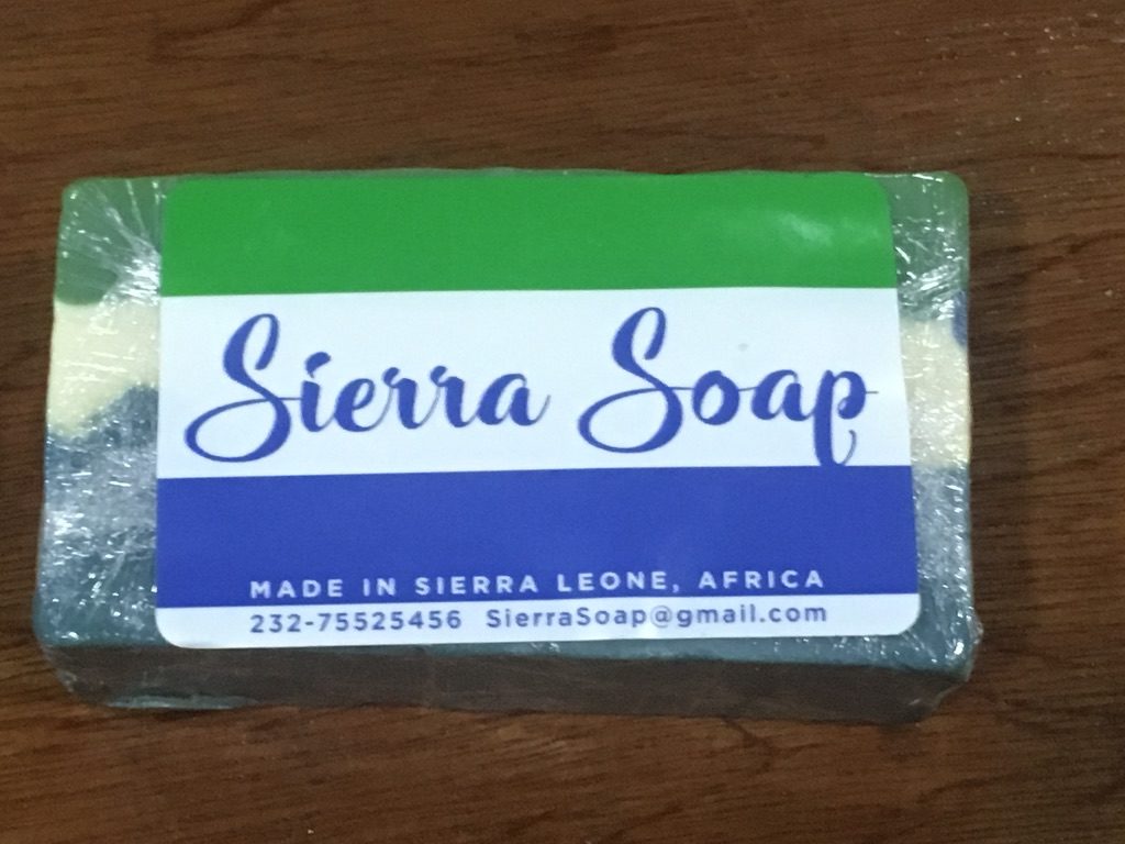 The soap smells very nice as it contains lemongrass, so I would recommend any visitor to buy a few of these nice soap in Sierra Leone colors before you leave.
